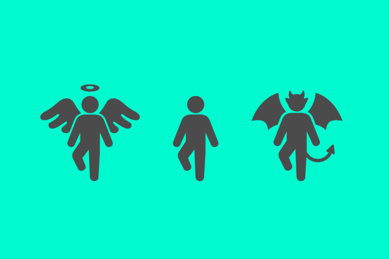 1人は天使、1人は悪魔、1人は人間である。